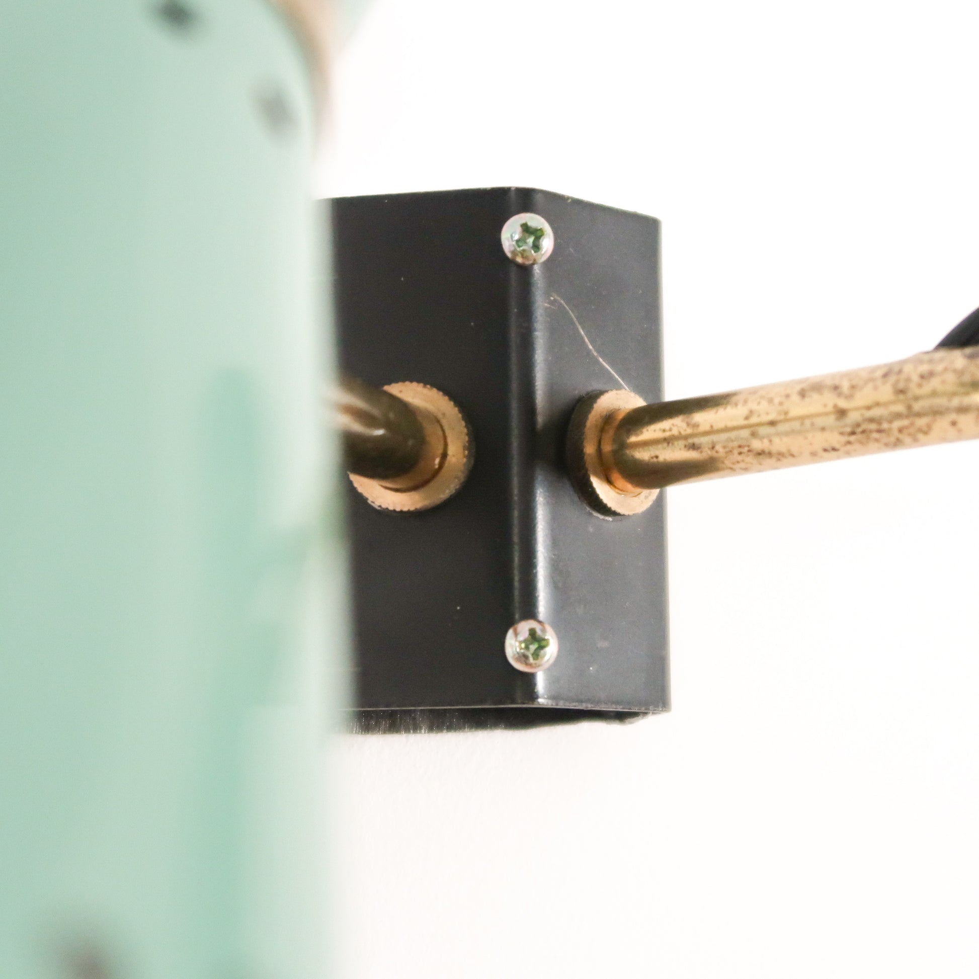 Double applique diabolo en laiton et en aluminium, travail des années 50. les têtes sont orientables. Le système d'accroche d'origine étant inexistant, un nouveau à été fabriqué.
