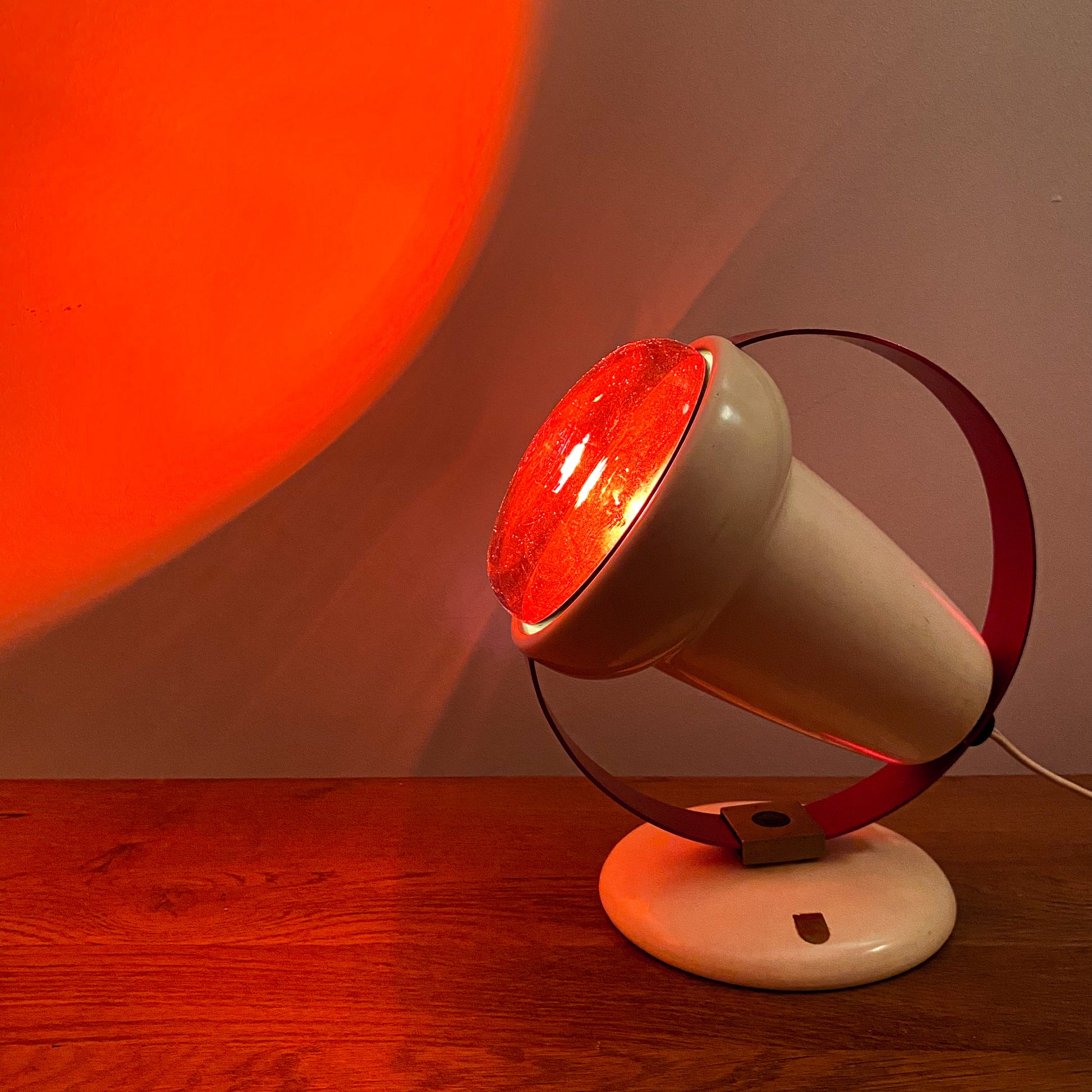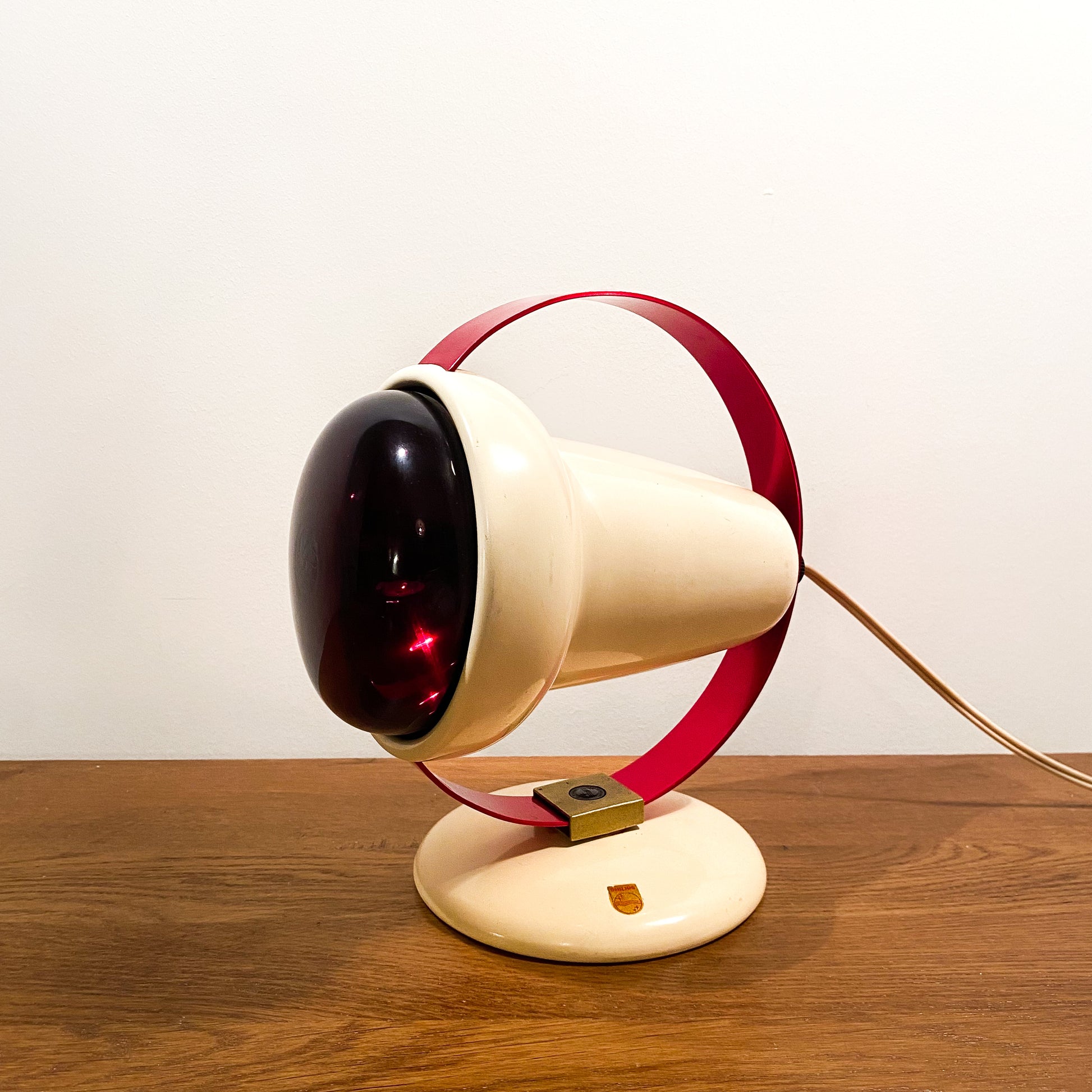 Très belle lampe infrarouge chauffante destinée à l'origine pour un usage médical (soulagement des rhumatismes). Dessinée par Charlotte Perriand pour Philips au début des années 50. Aujourd'hui, son design de style Space Age très futuriste en fait un bel objet de curiosité à placer dans votre décoration vintage.