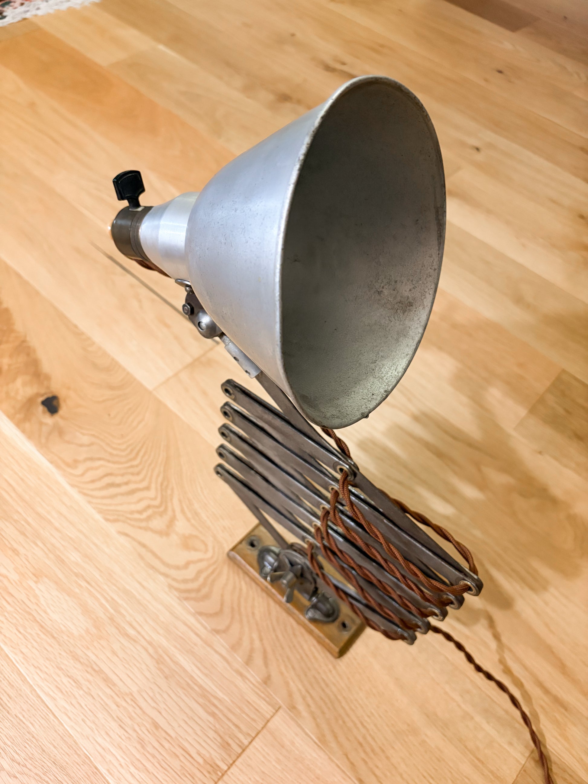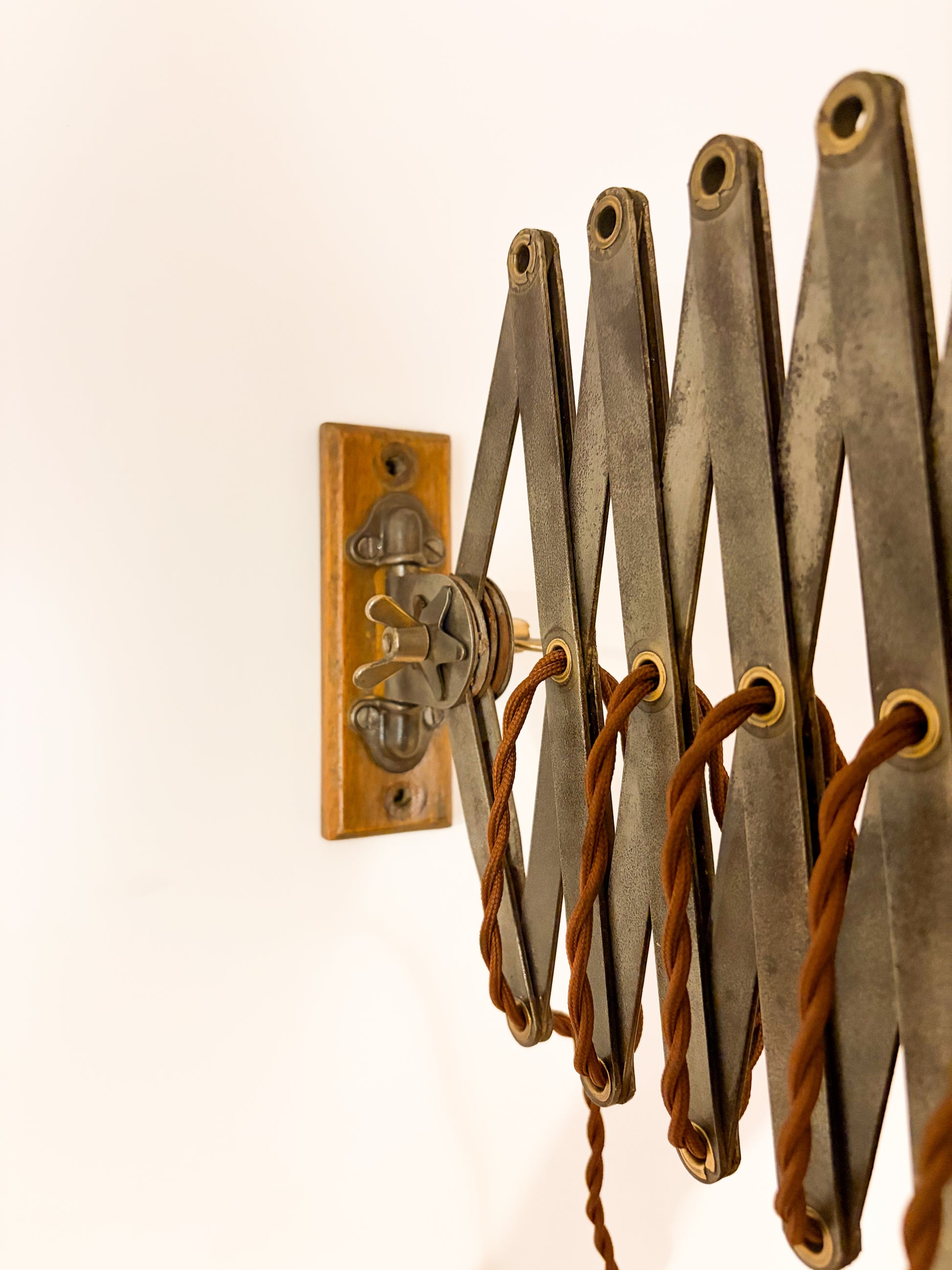 Belle lampe applique accordéon Mazda des années 50 patiné graphite.