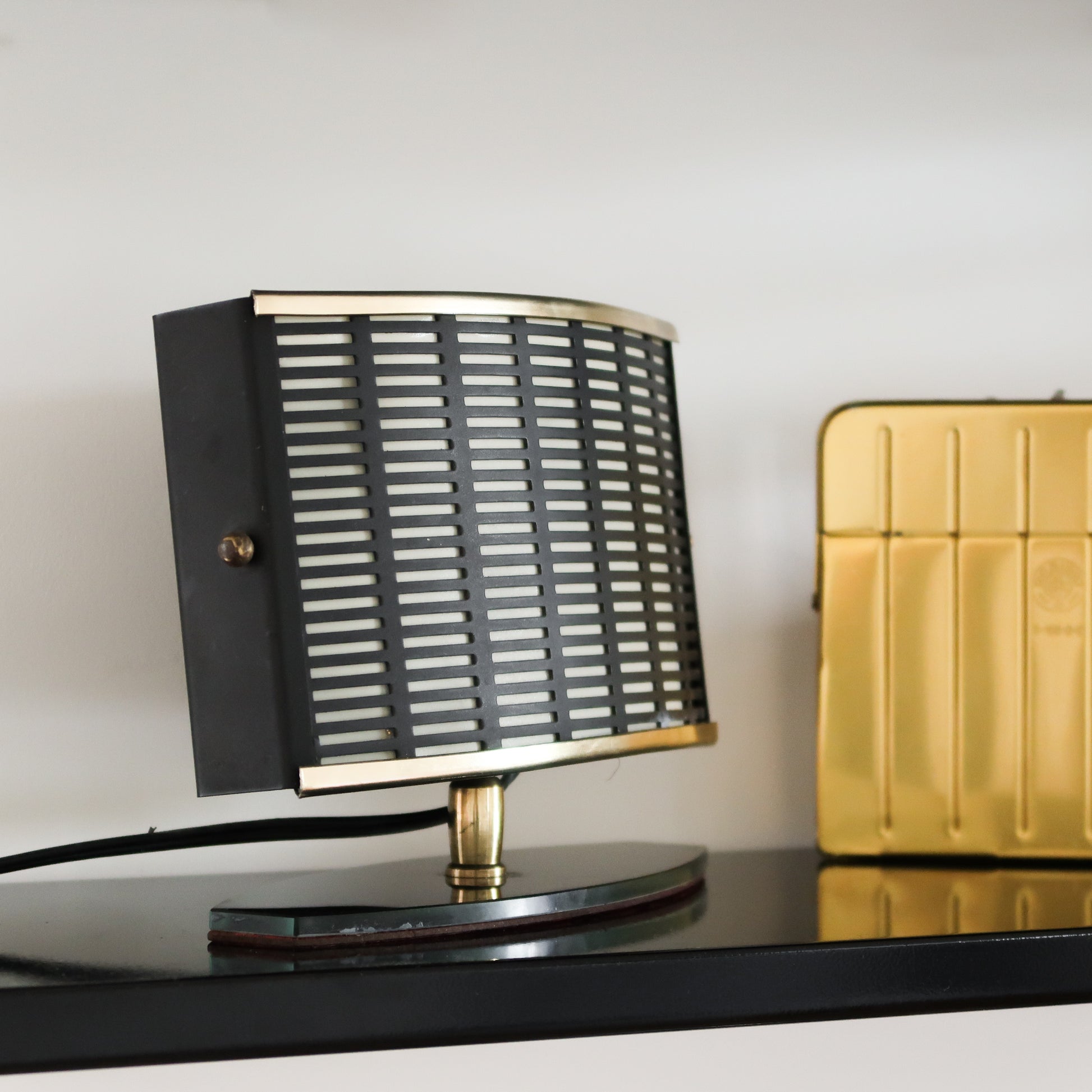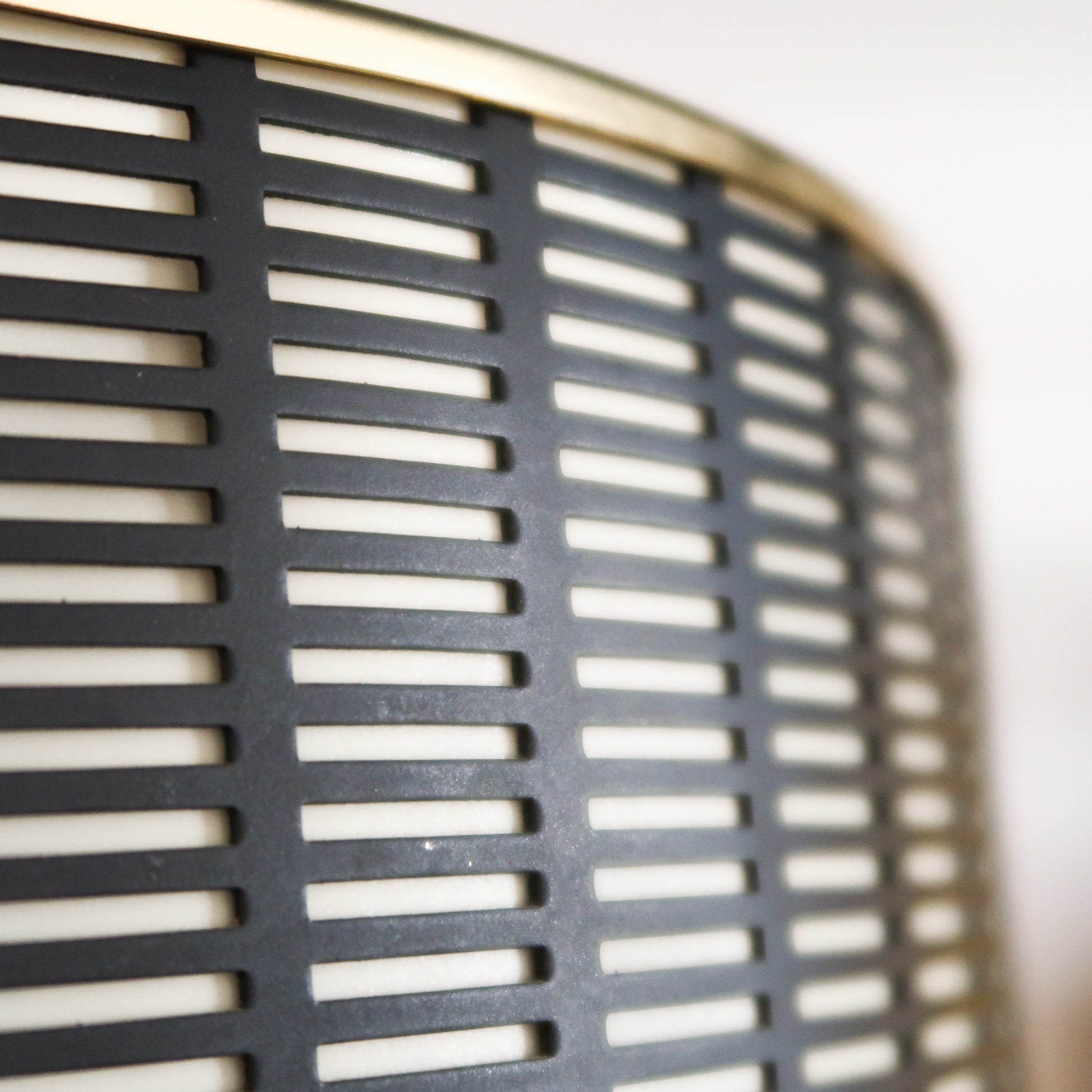 Lampe d’ambiance éditée au début des années 60 par la marque française Aluminor. Produit un bel éclairage tamisée grâce à sa grille ajourée.