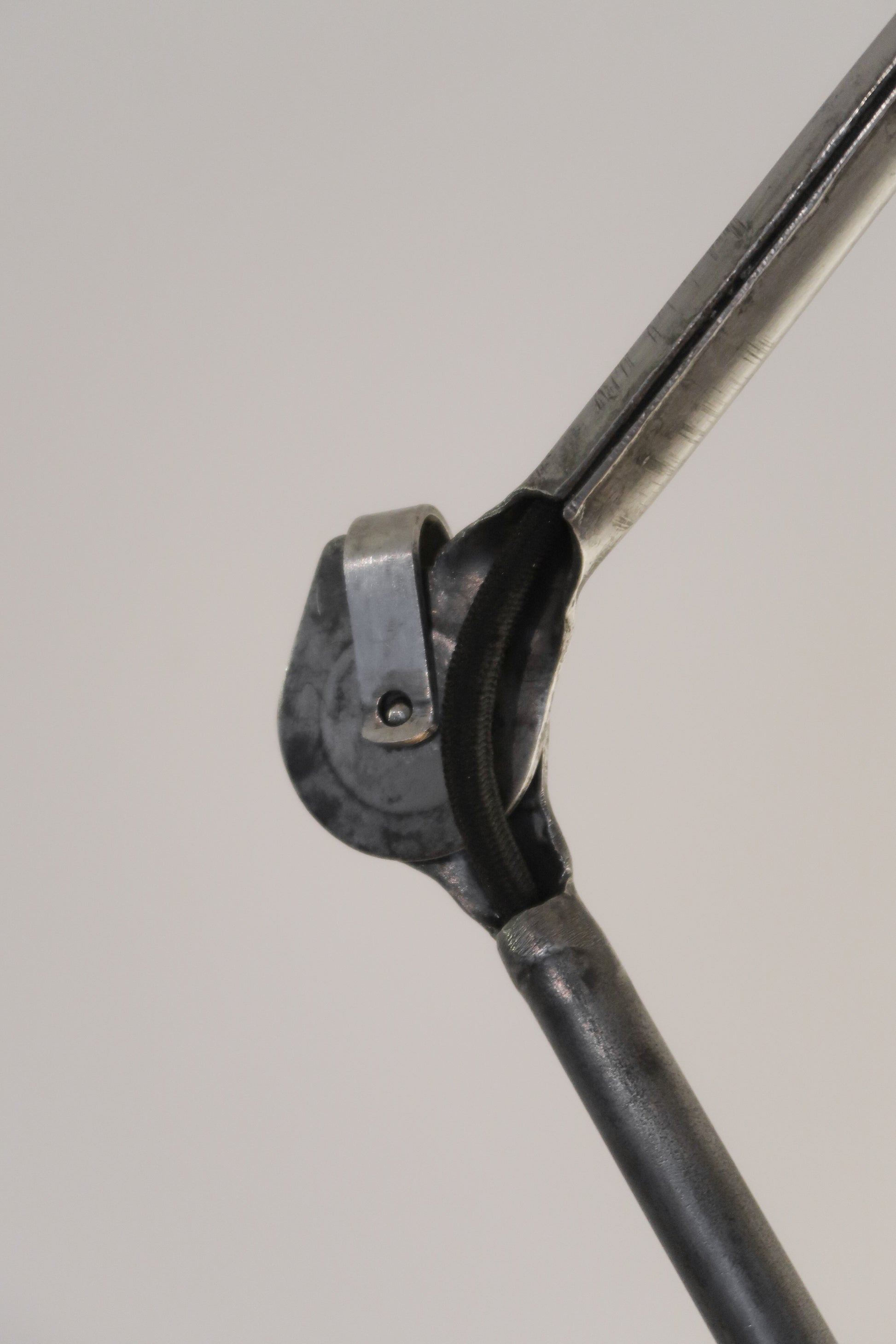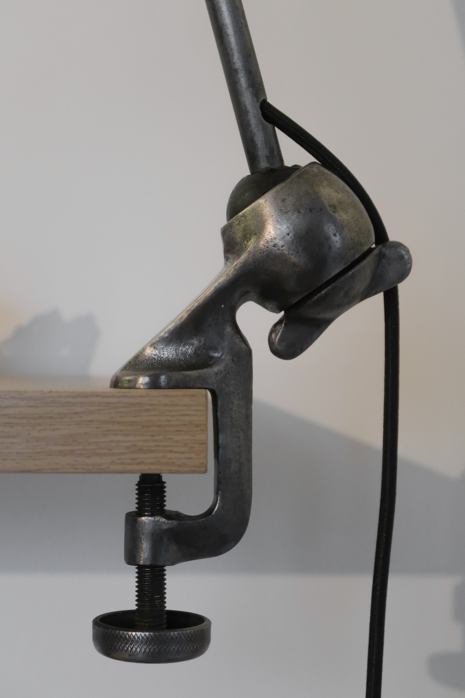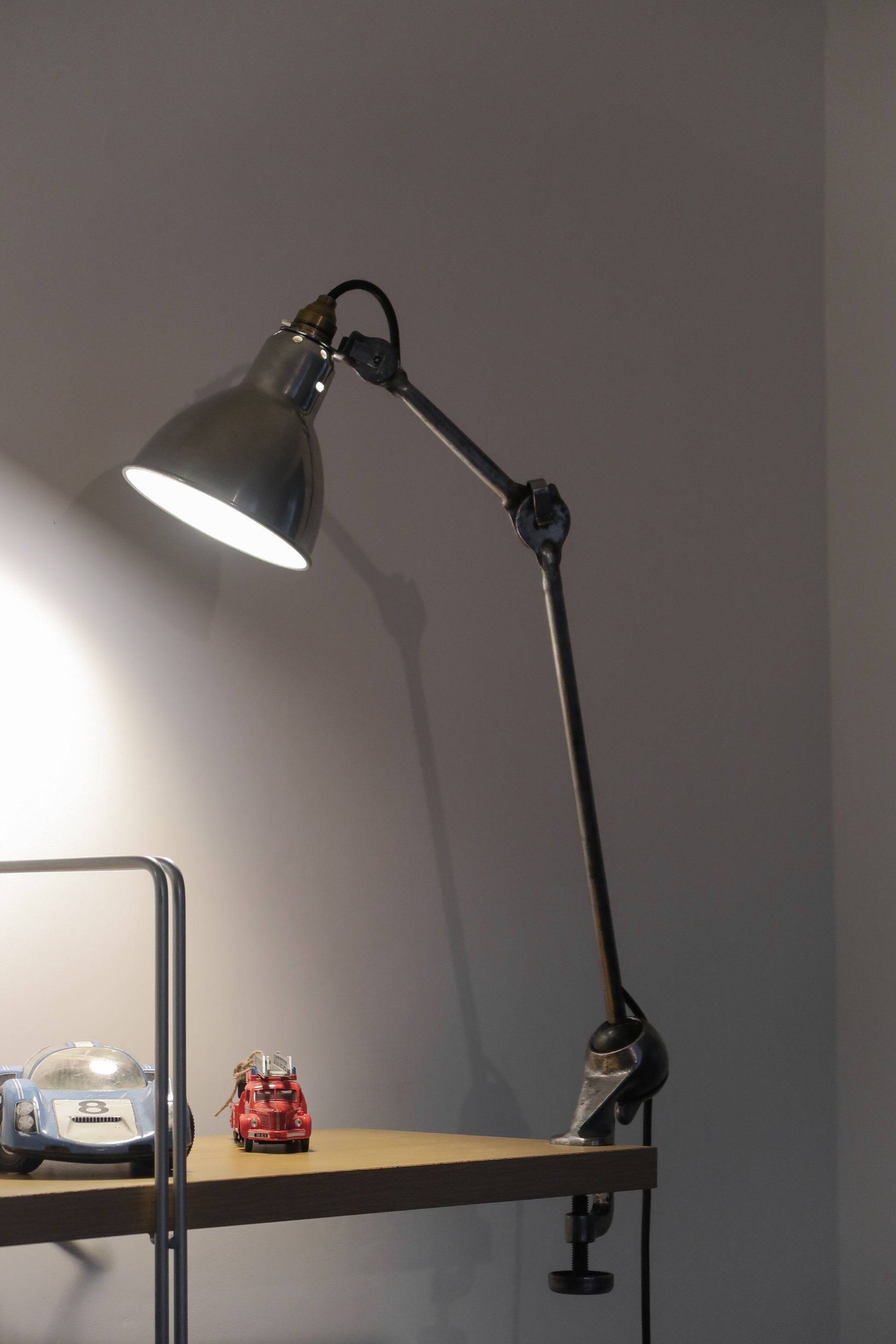 Lampe Gras modèle 201 des années 1930. Cette belle lampe vintage de style industriel a été entièrement restaurée, les bras arborent une jolie patine anthracite, le globe a été polie.